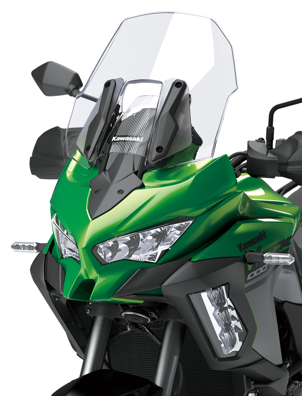 Scratch-resistant clear windscreen, designed to provide additional rider comfort. This screen is approximately 90mm higher and 140mm wider than standard. Kawasaki branded product, produced and developed by Kawasaki and fully road legal.
