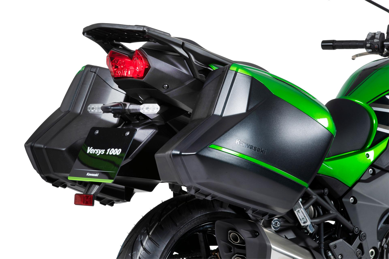 Quick release 56L pannier set that will hold most full-face helmets. Panniers designed to attached to handgrips and footrest and give a clean sporty look when removed. Narrow mounting width of 93cm and suitable for high speed